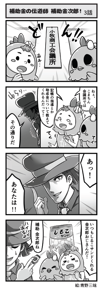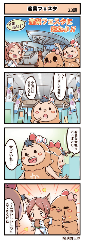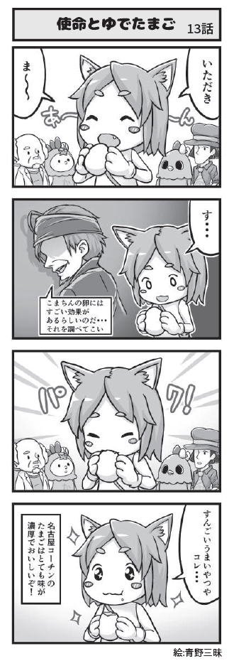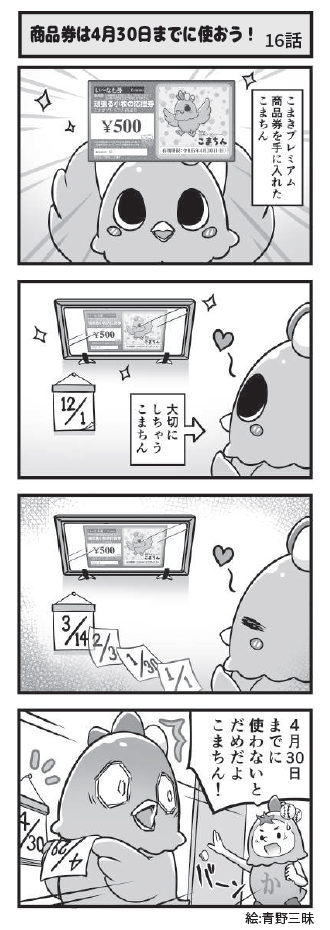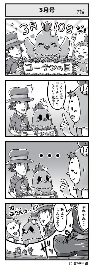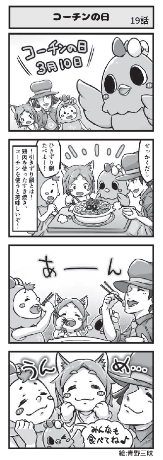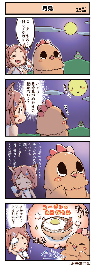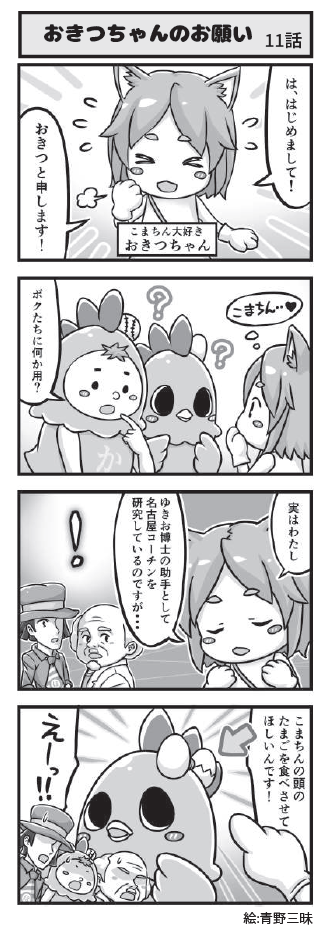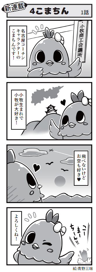 名古屋コーチンのキャラクター「こまちん」と愉快な仲間達の日常を描いた4コマ漫画「4こまちん」(絵:青野三昧)を小牧商工会議所「会報」で連載しています。
